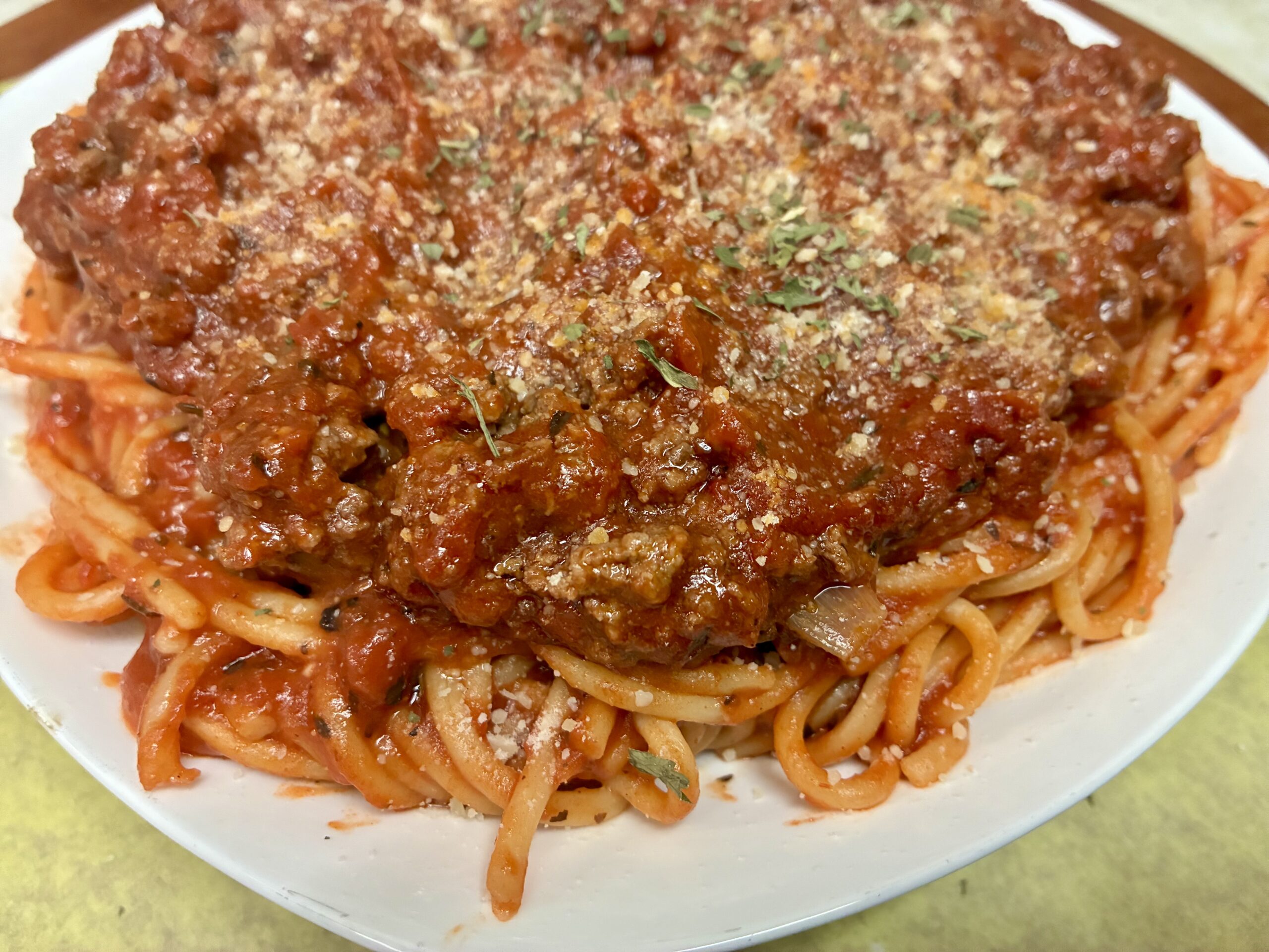 Savory meaty sauce, homemade marinara, and tender spaghetti noodles, paired with garlic bread. Perfect for takeout or delivery!